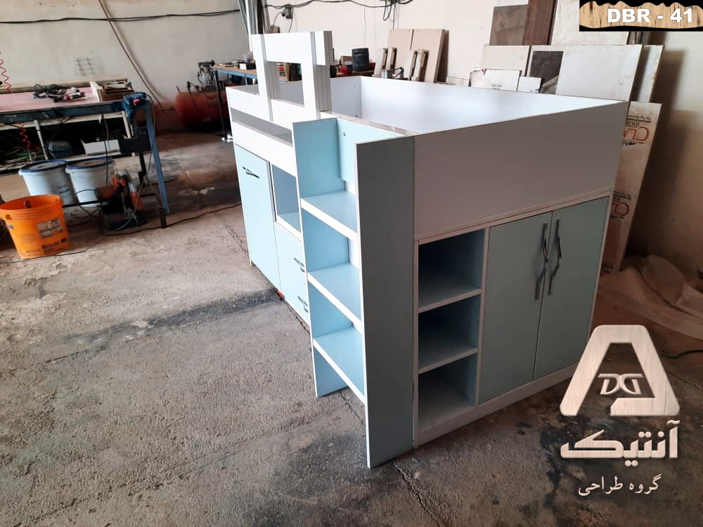 ست تخت یکنفره با نردبان میز تحریر کشویی چرخ دار کمد لباس رگال دار کشوی لباس و کتابخانه